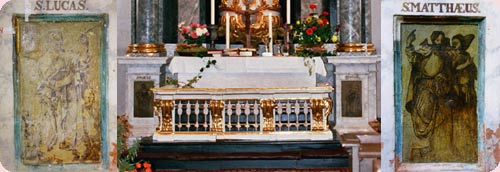 (Darstellungen der Evangelisten) auf Putz am Postament,