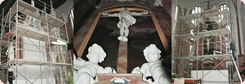 sowie am Leinwandgemälde hinter dem Kruzifix |